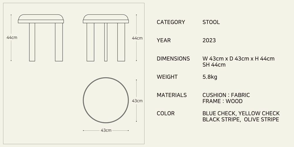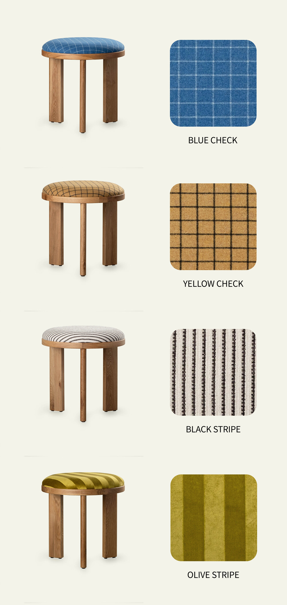 자연스러운 에쉬 원목의 텍스쳐와 패브릭의 조화가 돋보이는 스툴로 다양한 공간에서 활용도 높게 사용될 수 있다. 넉넉한 크기와 편안한 쿠션감으로 오랜 시간 편안하게 머무를 수 있는 스툴이다.